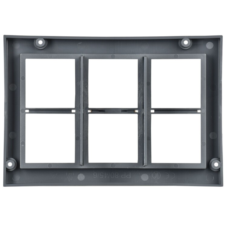 Рамка приборная на 12 модулей ONFLOOR 24. Предназначена для установки в лючок напольный ONFLOOR 24 (максимум 2 шт.) 12 модулей (6 постов 45х45 мм / 12 модулей 45х22,5) электроустановочных изделий. Комплект поставки: Рамка приборная на 12 модулей - 1 шт.; разделительная перегородка - 2 шт.; крепежные винты - 4 шт. Материал: полиамид. Цвет: тeмно-серый RAL 7012.