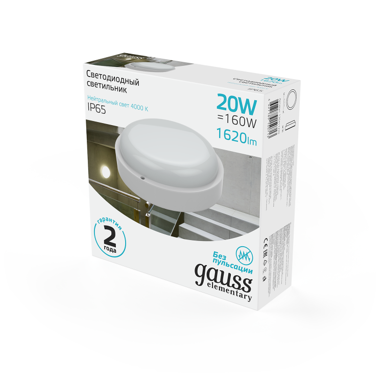 Светодиодные светильники Gauss Elementary предназначены для общего освещения наземных/подземных проходов, проездов, подъездов, лестничных клеток, входных групп, балконов, технических и подсобных помещений, в том числе, с повышенными требованиями к пылевлагозащите до IP65. В данной серии используется драйвер, обеспечивающий стабильную работу светильника при напряжении сети от 160В до 260В. Доступны модели с микроволновым датчиком движения.