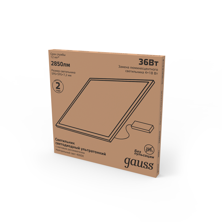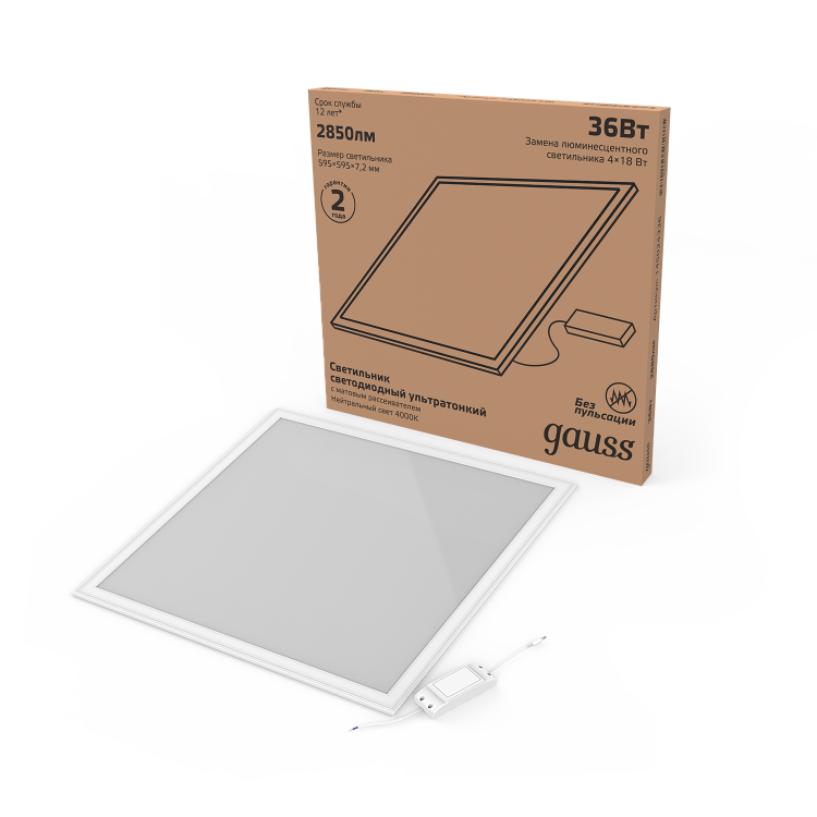 Светильник офисный Gauss 36W в ультратонком корпусе с устройством крепления вместо панели Армстронг 6500К это высокоэффективная современная LED панель с яркостью свечения 2880лм и отсутствием пульсации благодаря высокотехнологичному драйверу, который входит в комплект. Качественный опаловый рассеиватель обеспечивает равномерный не слепящий глаза свет. Цветовая температура 6500К создаст рабочую атмосферу в любом офисе, автосалоне, фудкорте, аэропорту вокзале, магазине, медицинском и спортивном центрах. Корпус панели выполнен из прочного алюминия.
