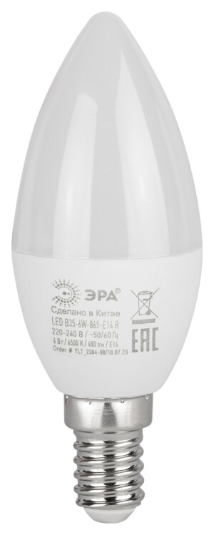 Лампочка светодиодная ЭРА RED LINE LED B35-6W-865-E14 R Е14 / E14 6 Вт свеча холодный дневной свет (кр. 1шт)