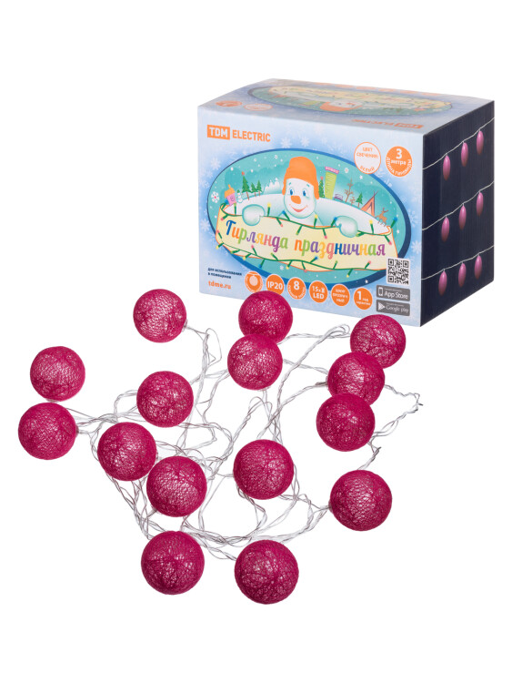 Гирлянда имеет степень защиты IP44, что позволяет применять ее как внутри помещения, так и на улице.