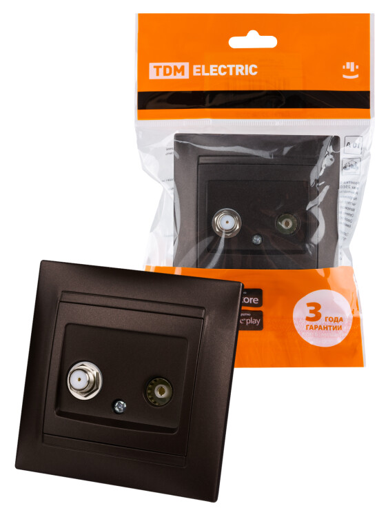 Розетка TV ("мама") + SAT (F-разъем) 0-2400МГц шоколад "Лама" TDM (кр.10шт)