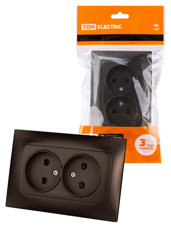 Розетка двойная 2П 10А 250В с защ. шт. шоколад "Лама" TDM (кр.7шт)