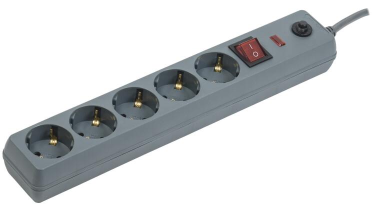 Сетевой фильтр СФ-05К 16А 5 мест 2P+PE/5м 3х1мм2 серый IEK (кр.1шт)