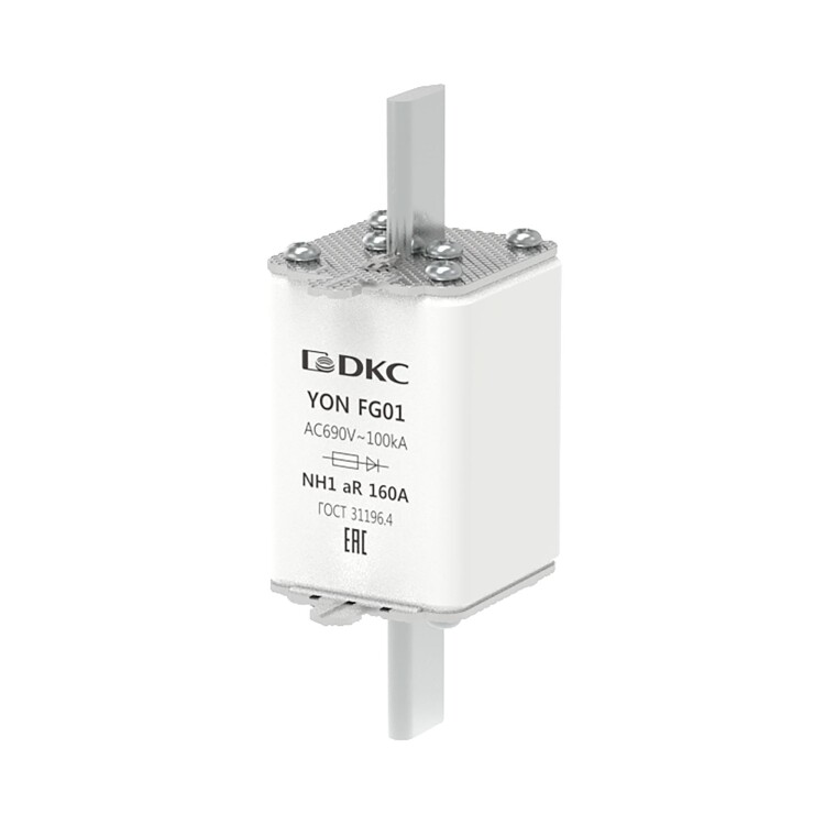 Предохранитель YON ножевого типа FG1 с одинарной индикацией 160А предназначен для защиты полупроводников и электронных компонентов электроустановки от короткого замыкания в цепях переменного тока напряжением до 690В (характеристика aR).