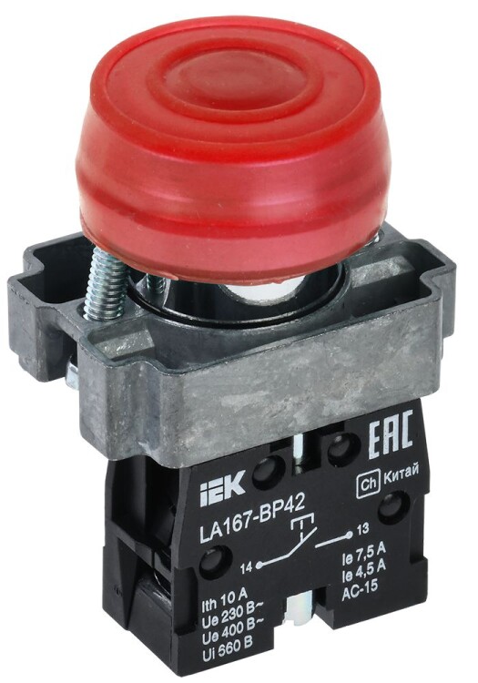 Кнопка LA167-BP42 d=22мм 1р красная IEK (кр.10шт)