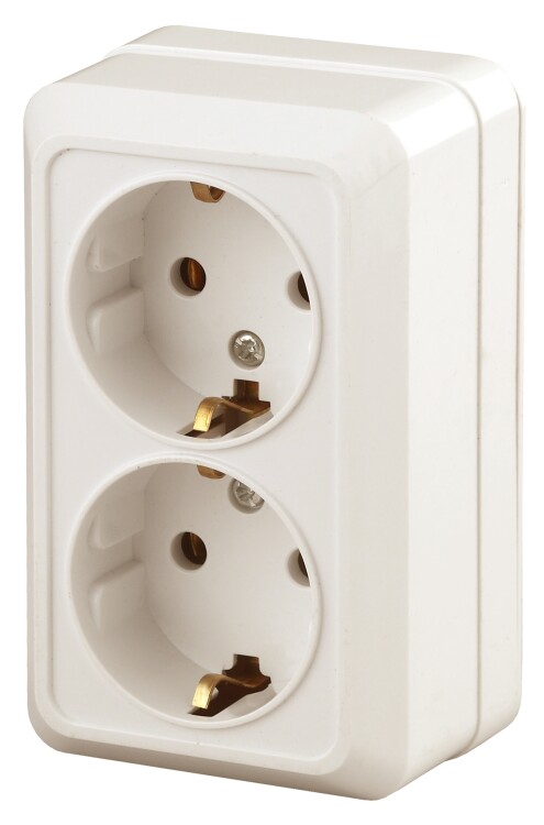 Розетка Intro Quadro 2-204-02 с зезем. двойная 2х2P+E Schuko, 16А-250В, IP20, ОУ, слоновая кост аналог Б0027656
