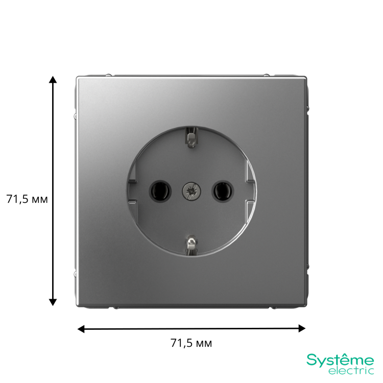 Механизм с быстрозажимными клеммами Systeme Electric серии ArtGallery в цвете сталь розетки одинарной с заземлением и без шторок подходит для сетей 250 В, на ток 16 А.