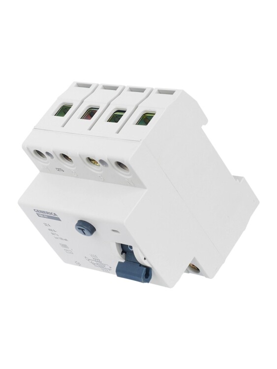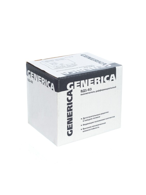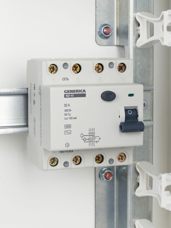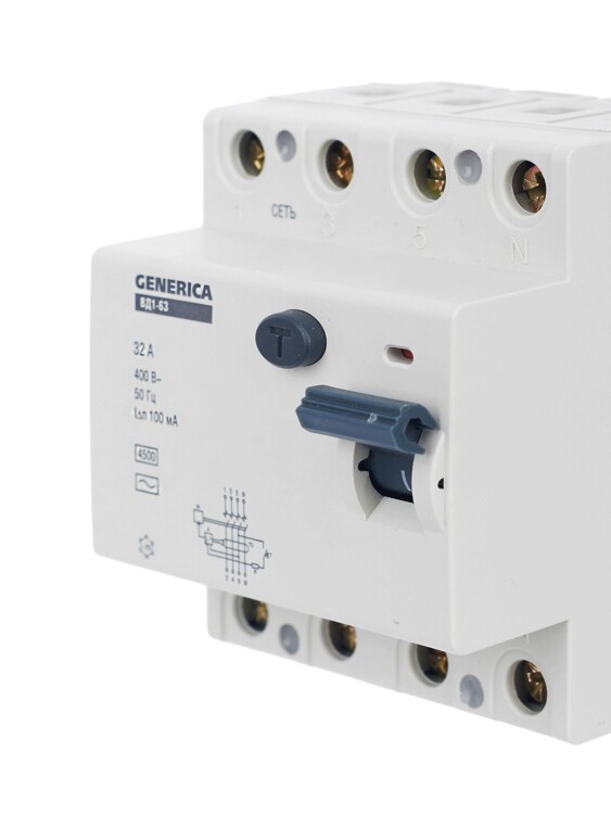 Быстродействующий защитный выключатель ВД1-63 (УЗО) GENERICA - устройство электронного типа, зависящее от напряжения и реагирующее на дифференциальный ток, без встроенной защиты от сверхтоков. Предназначен для защиты человека от поражения электрическим током.