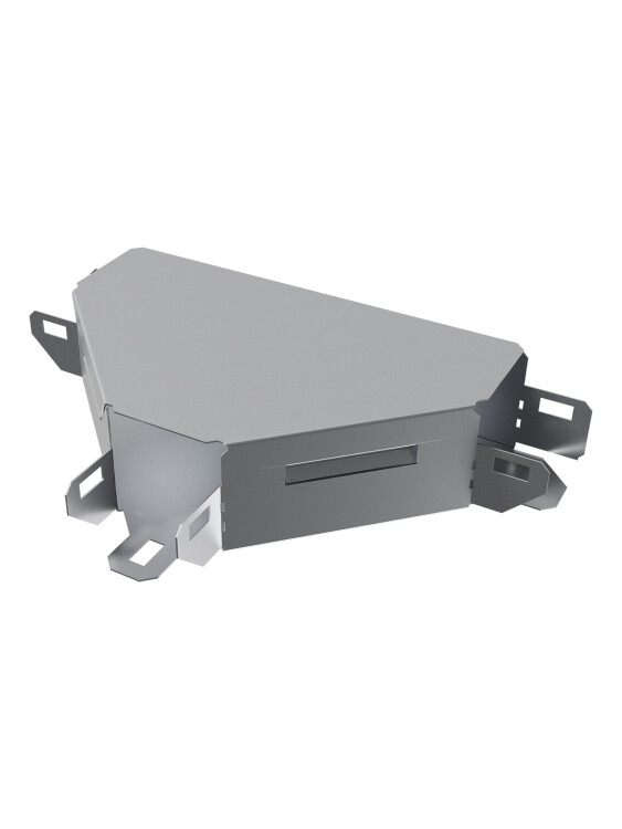 Назначение:br/Предназначены для прокладки кабельных трасс и слаботчных инженерных системbr/Применение:br/Объекты гражданского строительства.Объекты промышленного строительства.Объекты коммерческого строительства.br/Преимущества:br/Повороты, ответвители Т-образные и разветвители крестообразные в комплекте с крышкой.Интегрированный разъем для соединения с лотком.br/Материалы:br/Рулонная холоднокатанная сталь (ГОСТ 14918-80).br/