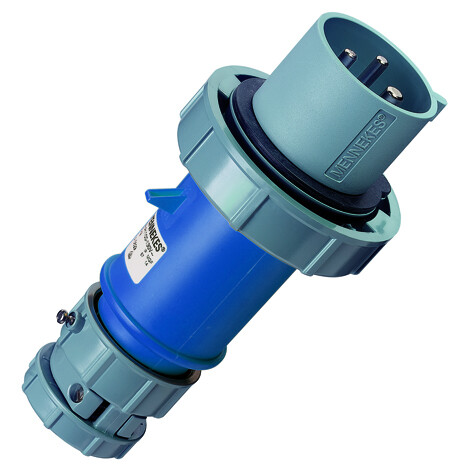 32A, 3п, 6ч, 230B, 50-60Гц. Вилка кабельная, винтовые клеммы, термостойкие держатели контактов, никелированные контакты, герметичный кабельный ввод с внешним кабельным зажимом, защита от перегибов и натяжения кабеля, сечение кабеля 2,5 - 6 кв.мм, серия PowerTOP, синяя, IP67.