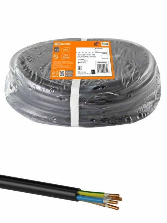 Кабель ВВГнг(А)-FRLS 4х1,5 ок(N, PE)-0,66 ГОСТ (20м) TDM (кр.20м)