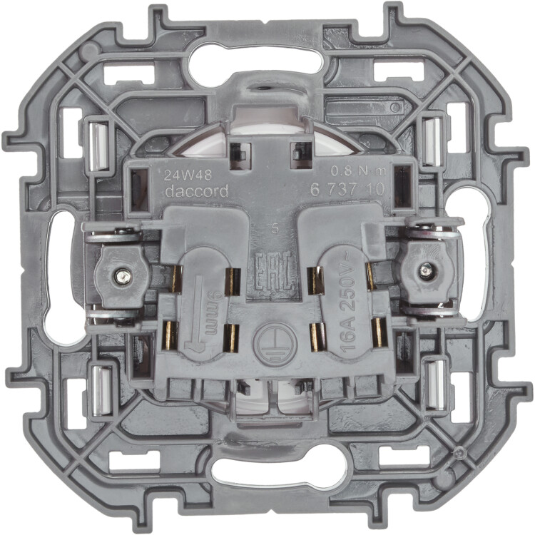 - Контактная группа изготовлена из высококачественной латуни CuZn37, имеет высокую степень упругости и сохраняет плотный контакт с вилкой при длительной эксплуатации