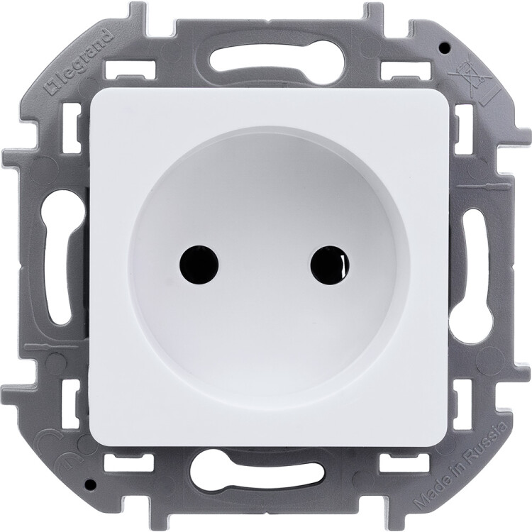 Розетка без заземления для скрытого монтажа Legrand/Daccord Inspiria, цвет "Белый", максимальный ток 16А, напряжение ~250В, максимальная мощность 3680Вт, винтовые зажимы.