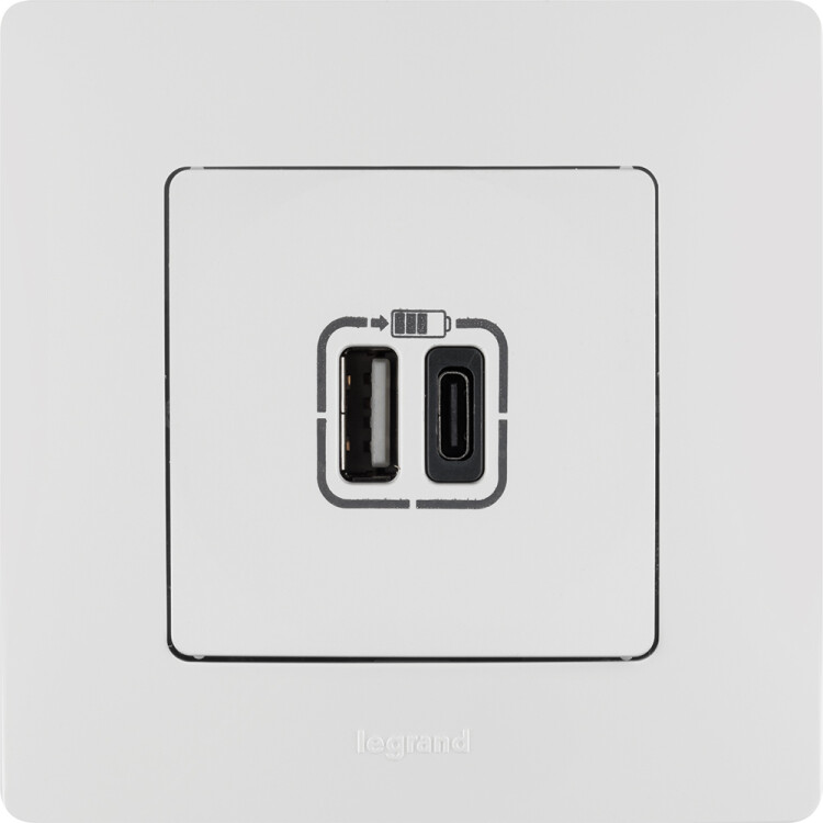 Зарядное устройство USB тип А / тип С - Legrand Etika - 3000мА 15Вт - белый
