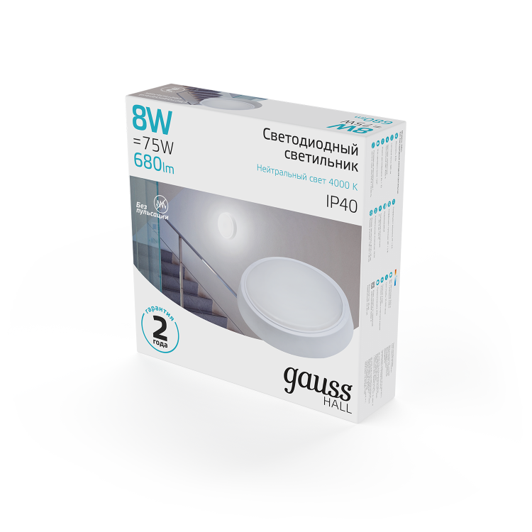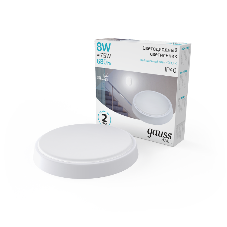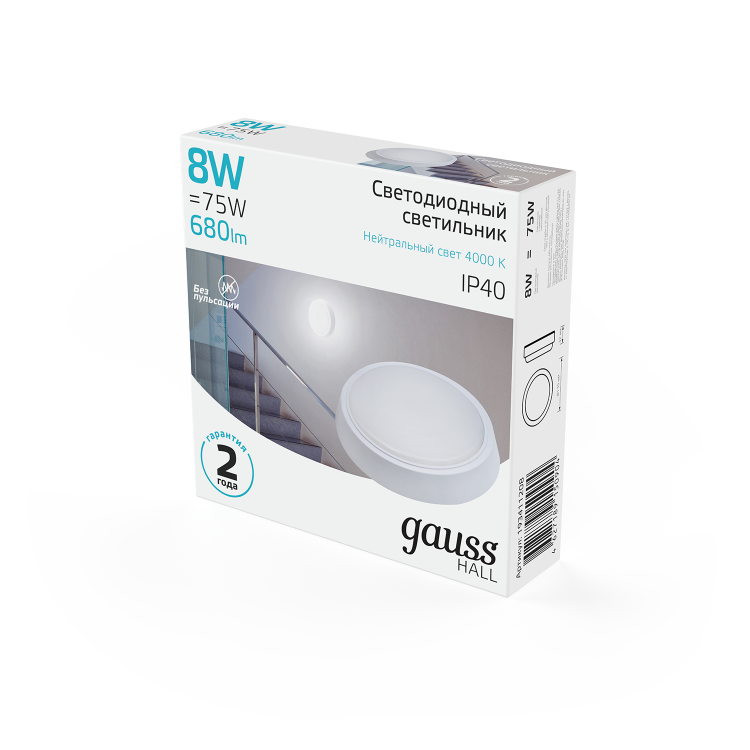 Светильник ЖКХ Gauss HALL круг 8W 680lm 4000K 200-240V IP40 D135*32мм белый LED 1/40