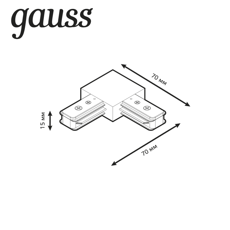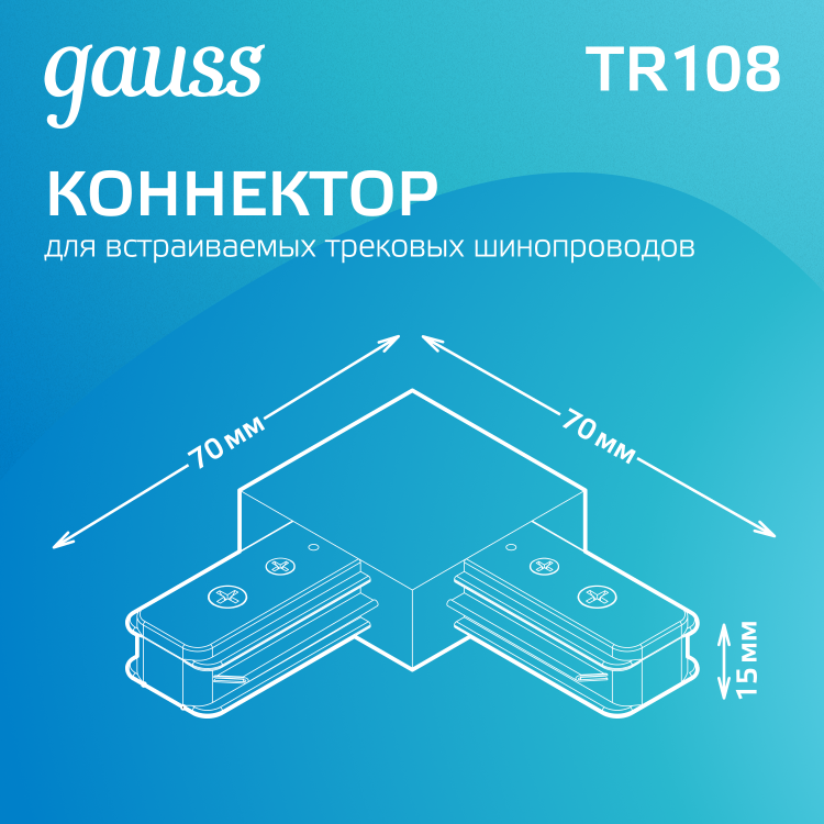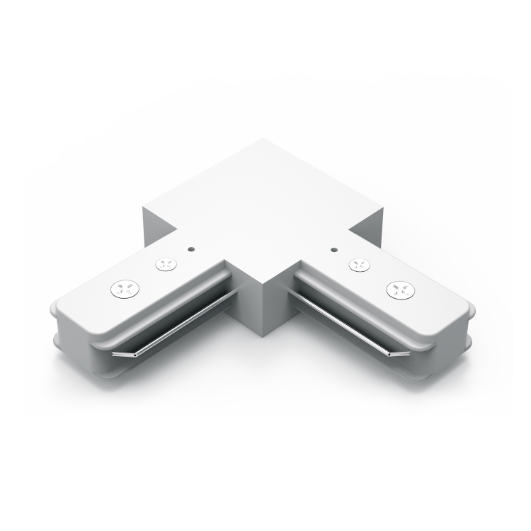 Коннектор Gauss для трековых шинопроводов угловой, это деталь для надёжного соединения двух шинопроводов в трековой системе.