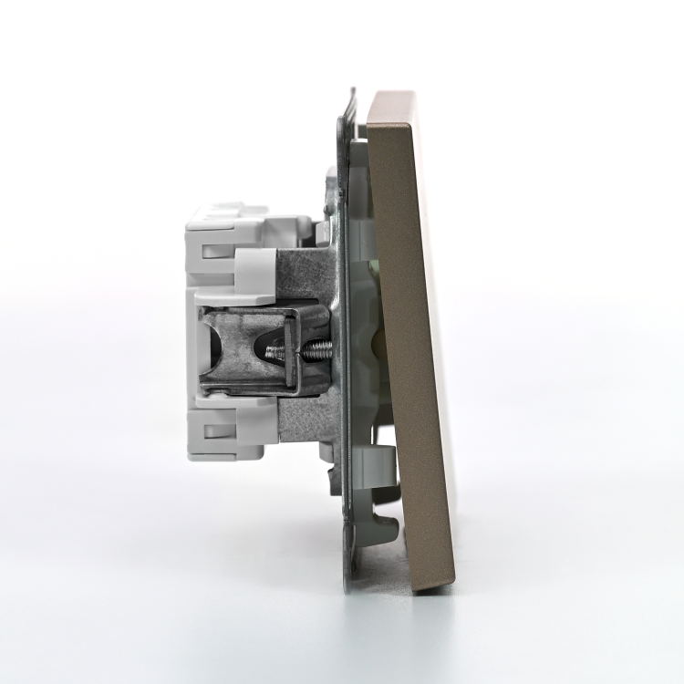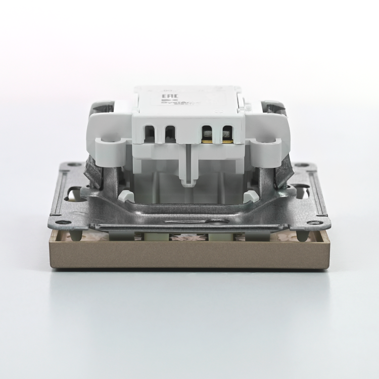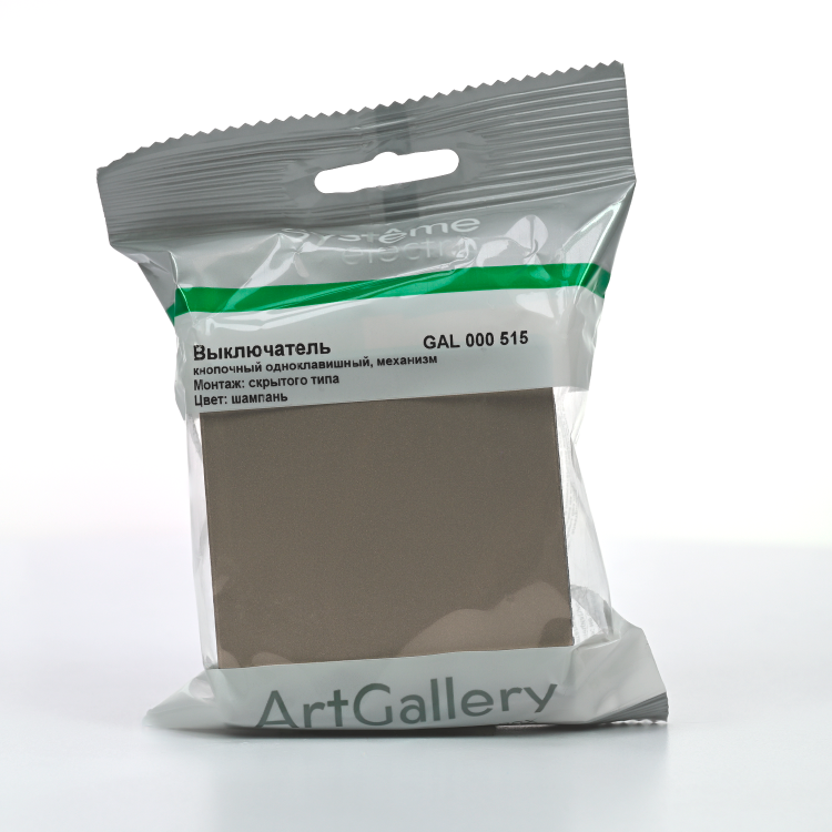 Механизм Systeme Electric серии ArtGallery в цвете шампань выключателя 1-клавишного с самовозвратом подходит для сетей 250 В, на ток 10 А.