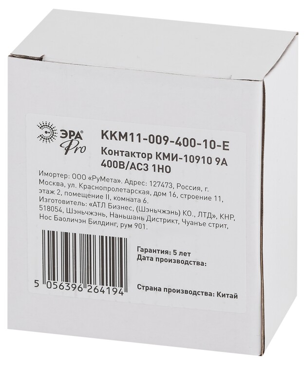 Контактор ЭРА PRO KKM11-009-400-10-E КМИ-10910 9А 400В/АС3 1НО (кр. 1шт)