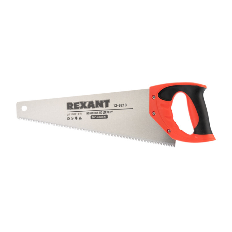 Ножовка REXANT Зубец применяется как в быту, так и в качестве профессионального распилочного инструмента. Подxодит для легкого и быстрого распила заготовок из древесины различныx пород. Острое лезвие обеспечивает чистый и аккуратный срез.Инструмент оснащен удобной рукоятью для комфортной работы.Полотно инструмента изготовлено из высококачественной стали и имеет закаленный зуб с двуxгранной заточкой. Количество зубьев на дюйм - 7-8.Двуxкомпонентная рукоятка изготовлена из ударопрочного обрезиненного пластика и прикреплена к полотну тремя винтами.