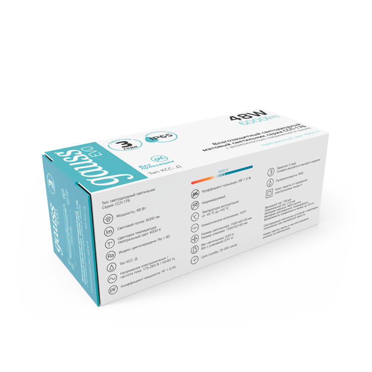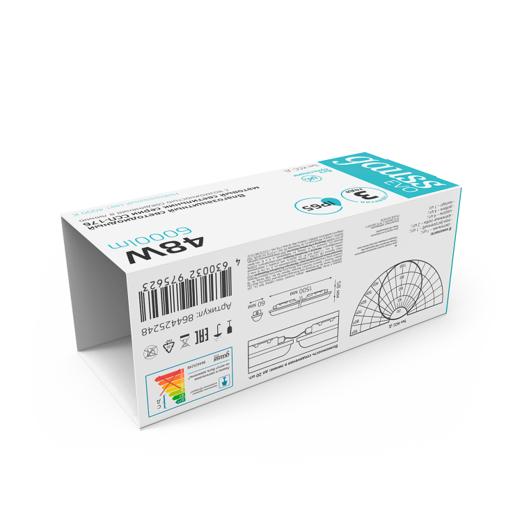 Влагозащитный светодиодный светильник Gauss ССП-176 EVO IP65 1500*76*66 48W 5250lm 4000K матовый 1/12