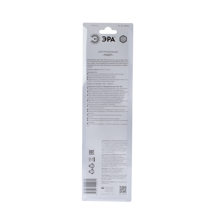 Оборудование для пайки ЭРА выполнена из высококачественных материалов обеспечивающих бесперебойную работу в есь срок службы. Электропаяльник незаменим при пайки медных проводников и монтаже электронных компонентов в электротехнике.