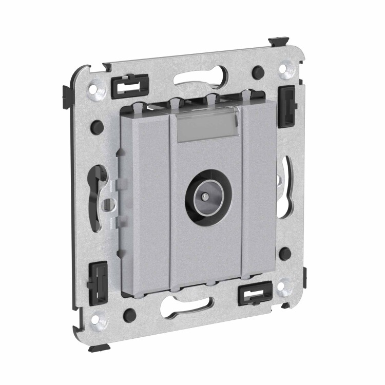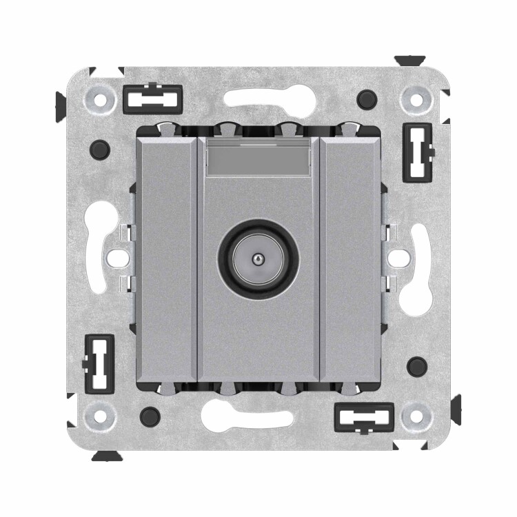 Оконеч ные телевизионные розетки предназначены для скрытой установки в стенах, поставляются в комплекте с суппортом. Применяются для подключения телевизионного кабеля. TV-розетки производства ДКС рассчитаны на частоту до 2400 Гц. Материал – металл, пластик. 2 модуля. Пластиковые детали имеют цвет "Закаленная сталь".