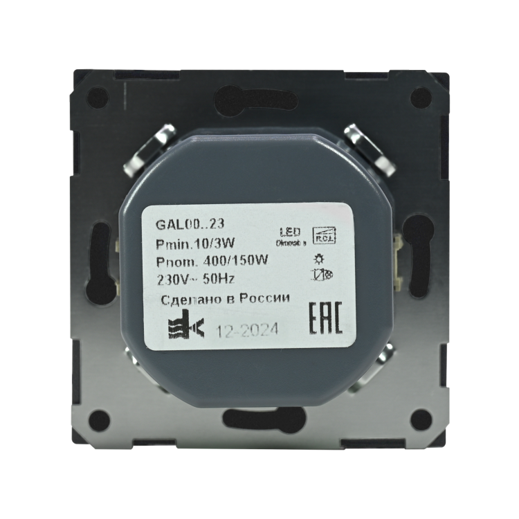 Механизм светорегулятора Systeme Electric серии ArtGallery в цвете сталь поворотно-нажимной для нагрузки мощностью до 400 Вт, подходит для LED ламп.