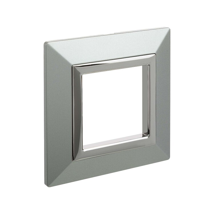 Светло-с еребристая рамка из металла для настенного монтажа. Назначение: декоративное оформление серии "Avanti"; монтаж в стену на каркас ЭУИ "Avanti" (код 4400802). Дизайн разработан Luca Mertelli. Материал – металл. Покрытие – порошковая краска. Кол-во модулей: 2