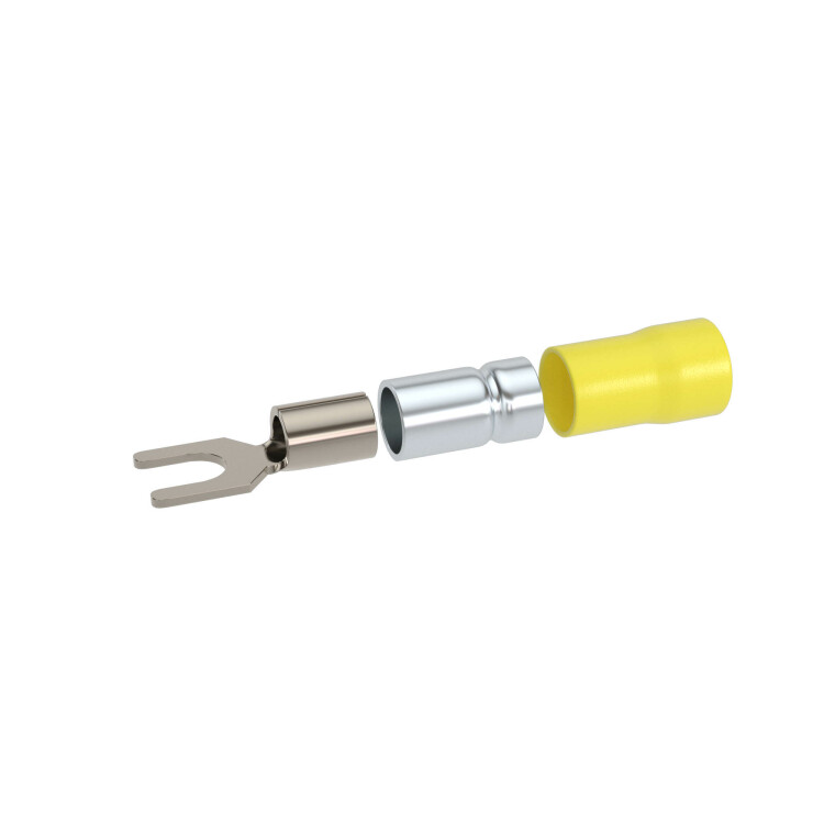 Предназначен для оконцевания медных/алюминиевых многопроволочных жил кабелей/проводов в электрических цепях переменного/постоянного тока напряжением до 600 В. Контактная часть выполнена из высококачественной меди марки М1. Лужение исключает образование гальванической пары. Внутренняя часть гильзы имеет радиальные насечки, повышающие плотность контакта. Изоляция из ПВХ выдерживает температуру до 85 ⁰C. Класс горючести - V0, стандарт UL 94. Двойная гильза обеспечивает наилучший электрический контакт и повышает виброустойчивость соединения. Рекомендованы для регионов с повышенной сейсмической активностью и на производственных объектах. Цвет - желтый. Сечение: 4-6 мм2. Диаметр отверстия клеммы 5,3 мм. Метиз - М5. Форма контактной части - вилка.