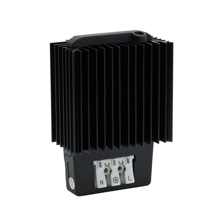 Обогреватель в черном алюминиевом корпусе мощностью 15 Вт предназначен для поддержания необходимой температуры внутри электротехнического шкафа. Работает от напряжения 110…240 В (AC/DC) с частотой 50/60 Гц. Обогреватель изготовлен из высококачественных материалов, обеспечивающих надежную работу. Степень защиты – IP20. Благодаря компактным размерам 50x70x97 мм этот обогреватель легко устанавливается в ограниченном пространстве. Рабочий диапазон температур от –45 до +70 ˚C делает его подходящим для использования в суровых условиях эксплуатации. Обогреватель оснащен нагревательным элементом РТС-типа, что обеспечивает стабильную и долговечную работу.