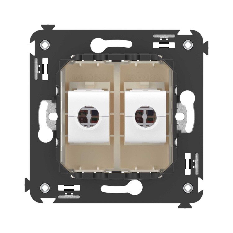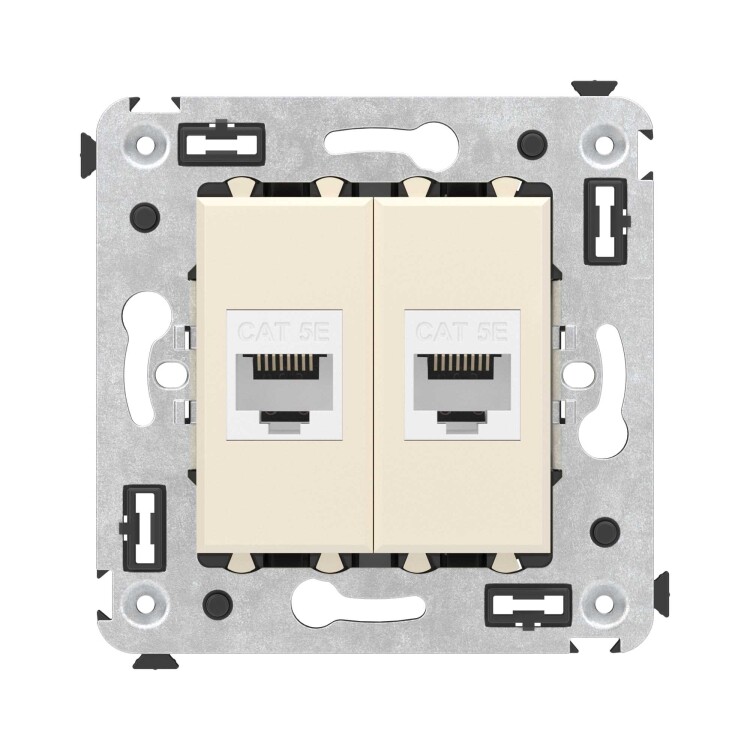 Компью терная розетка двойная без шторки используется для подключения компьютерной техники и соединения с патч-панелью. Компьютерная розетка предназначена для скрытого монтажа в стену, поставляется в комплекте с суппортом. Розетка RJ-45 категории 5e – это наиболее популярная на сегодняшний день модель. Она позволяет организовать сеть с частотой 125 МГц и скоростью до 1000 Мбит/с. Материал – металл, термопласт. Пластиковые детали устройства имеют оттенок "Ванильная дымка".