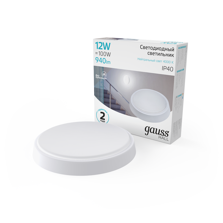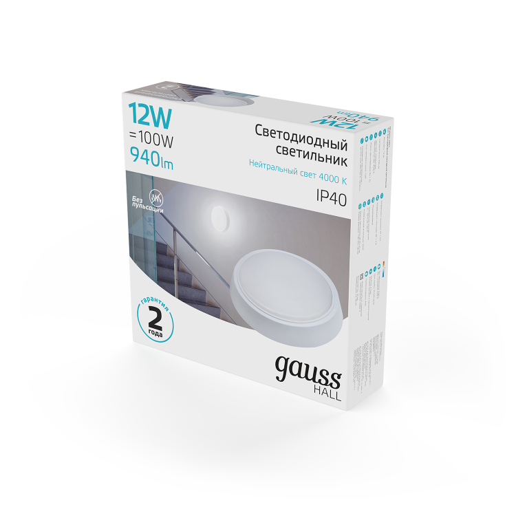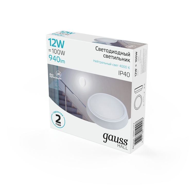 Светильник ЖКХ Gauss HALL круг 12W 940lm 4000K 200-240V IP40 D135*32мм белый LED 1/40