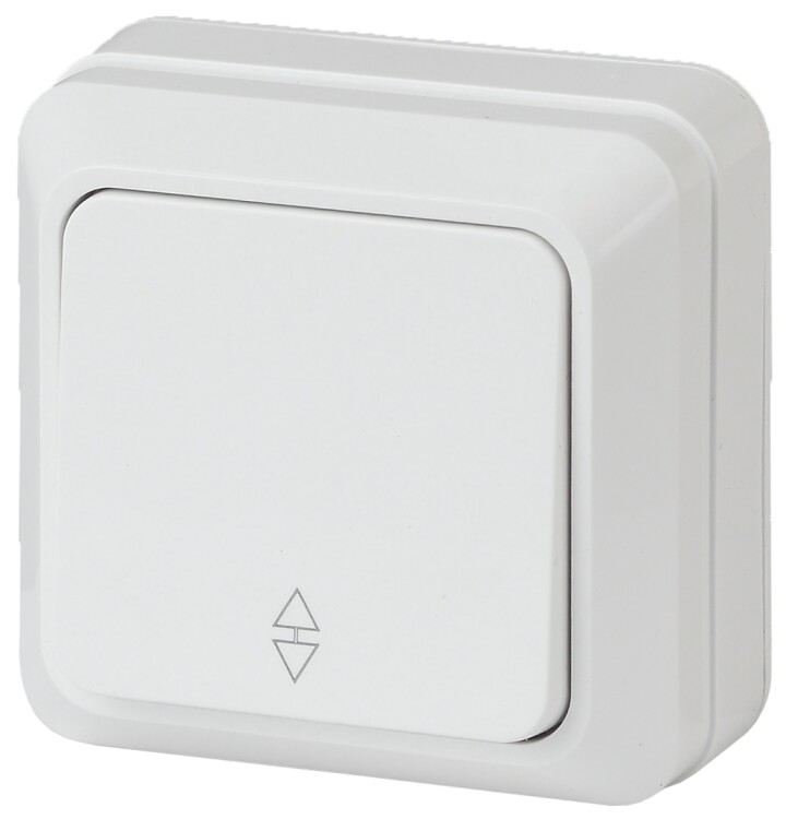 Проходной выключатель (переключатель) 1-клав ишный серии Intro Quadro открытой установки цвет белый 2-103-01. Номинальные характеристики 10А 250В . Выключатель выполнен из качественного термопласта, стали и латуни, оснащён винтовыми зажимами.