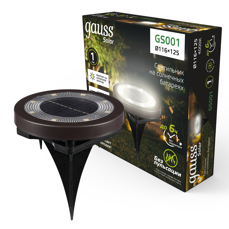 Светильники на солнечных батареях GS001 Gauss серии Solar эффективны и надежны в эксплуатации, позволяют экономить на оплате счетов за электроэнергию и просты в уходе