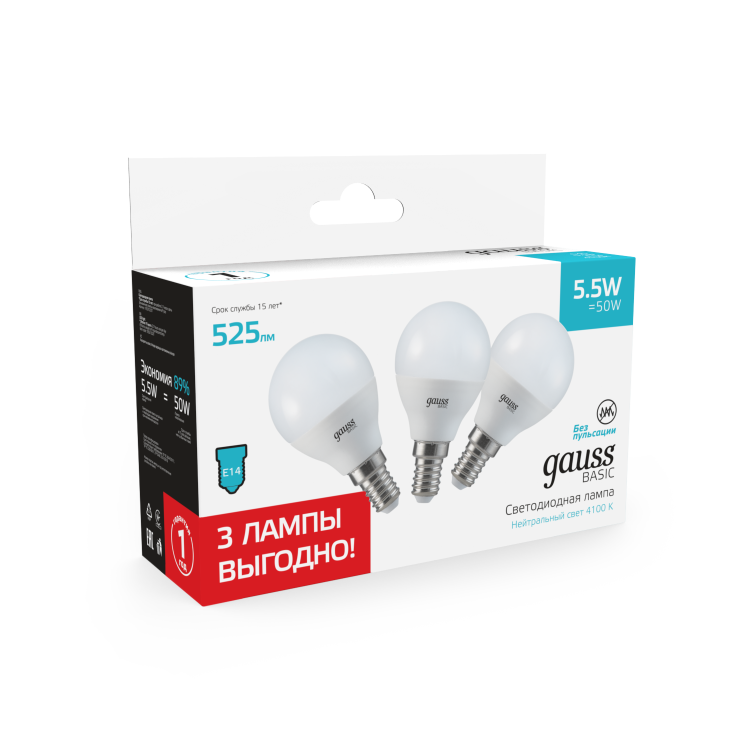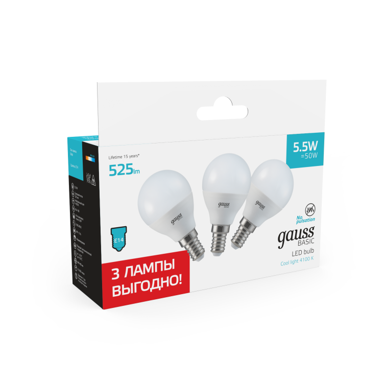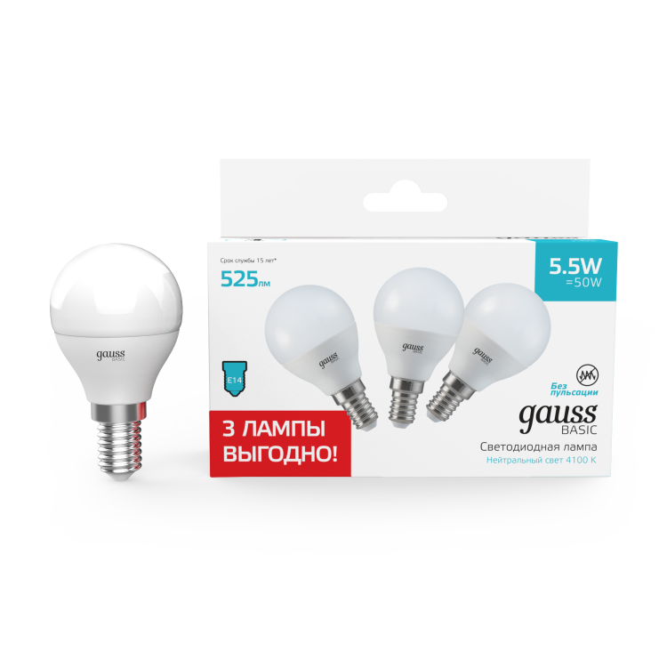 Лампа Gauss Basic любое помещение наполнит ярким светом, расходуя минимум энергии.