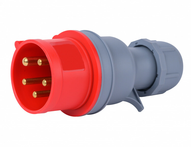 Вилка переносная серии ВП-103 Dekraft, номинальный ток 32 А, диапазон рабочего напряжения 380-415 В AC, степень пыле-влаго защиты IP44, количество полюсов 3Р+РЕ+N, код CEE 025.