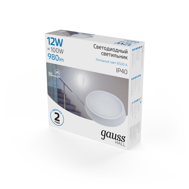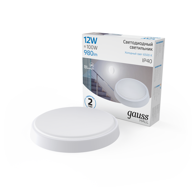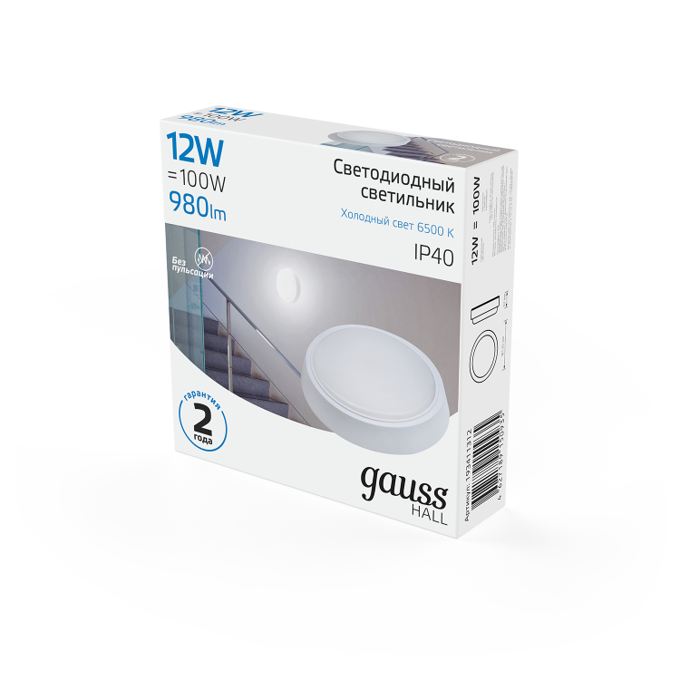 Светильник ЖКХ Gauss HALL круг 12W 980lm 6500K 200-240V IP40 D135*32мм белый LED 1/40