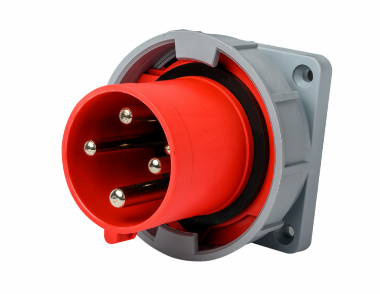Вилка для скрытой проводки серии ВЩ-103 Dekraft, номинальный ток 32 А, диапазон рабочего напряжения 380-415 В AC, степень пыле-влаго защиты IP67, количество полюсов 3Р+РЕ, код CEE 624W.