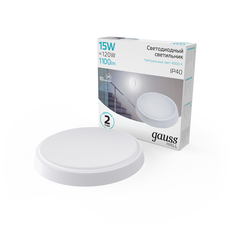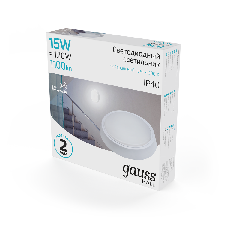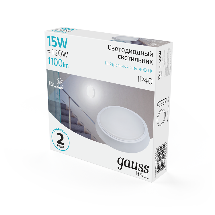 Светильник ЖКХ Gauss HALL круг 15W 1100lm 4000K 200-240V IP40 D155*33мм белый LED 1/40