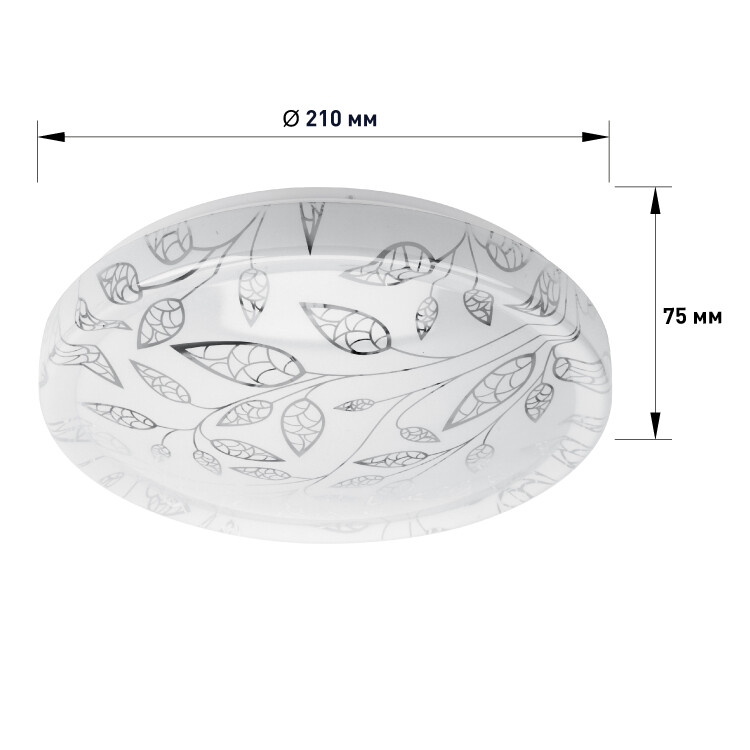 Плафон LED люстры декорирован изящным узором. Нежные ветки с лепестками гармонично смотрятся на круглом плоском корпусе. Такой светильник прекрасно подойдет для оформления гостиной, коридора, спальни или детской.