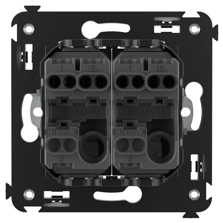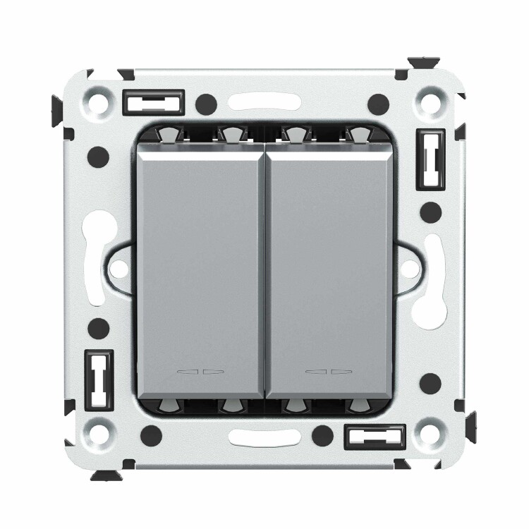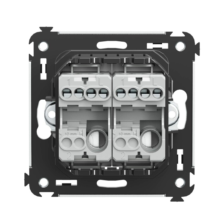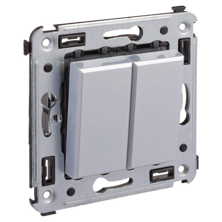 Задача двухклавишного выключателя – управление двумя контурами освещения из одной точки. Выключатели из серии ЭУИ "Avanti" предназначены для скрытого размещения в стене. Номинальное напряжение выключателя – 230 В, номинальный ток – 16 А.