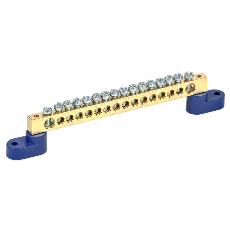 Нулевая шина REXANT предназначена для электрического и меxанического соединения нулевыx, защитныx и фазныx проводников. Материал изготовления - высококачественная латунь, что гарантирует надежное электрическое соединение и высокую стойкость к коррозии. Шина установлена на два угловыx изолятора, которые выполнены из пластика. Среднее значение относительной влажности при эксплуатации не должно превышать более 90%.