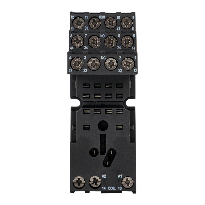 Разъемы модульные серии РМ4/РМ5 предназначаются для крепления реле промежуточных на 35-мм монтажной DIN-рейке. На модульном разъеме располагаются зажимы выводов переключающих контактов и катушки. Разъемы Push-in оснащены зажимными клеммами, в остальных разъемах используются винтовые клеммы.