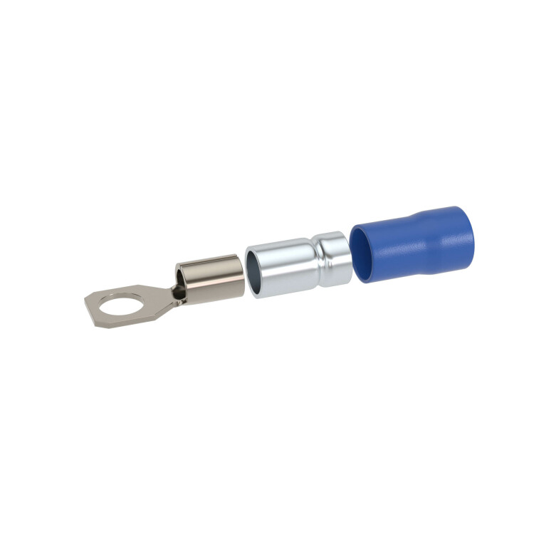 Предназначен для оконцевания медных/алюминиевых многопроволочных жил кабелей/проводов в электрических цепях переменного/постоянного тока напряжением до 600 В. Контактная часть выполнена из высококачественной меди марки М1. Лужение исключает образование гальванической пары. Внутренняя часть гильзы имеет радиальные насечки, повышающие плотность контакта. Изоляция из ПВХ выдерживает температуру до 85 ⁰C. Класс горючести - V0, станарт UL 94. Двойная гильза обеспечивает наилучший электрический контакт и повышает виброустойчивость соединения. . Рекомендованы для регионов с повышенной сейсмической активностью и на производственных объектах. Цвет - синий. Сечение: 1,5-2,5 мм2. Диаметр отверстия клеммы 4,3 мм. Метиз - М4. Форма контактной части - кольцо.