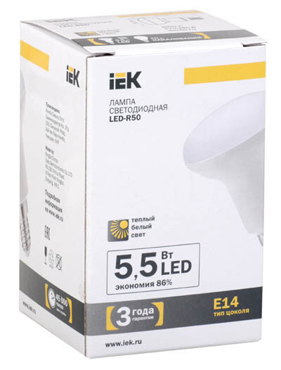 Лампа светодиодная R50 рефлектор 5,5 Вт 400 Лм 230 В 3000 К E14 IEK (кр.10шт) нМ