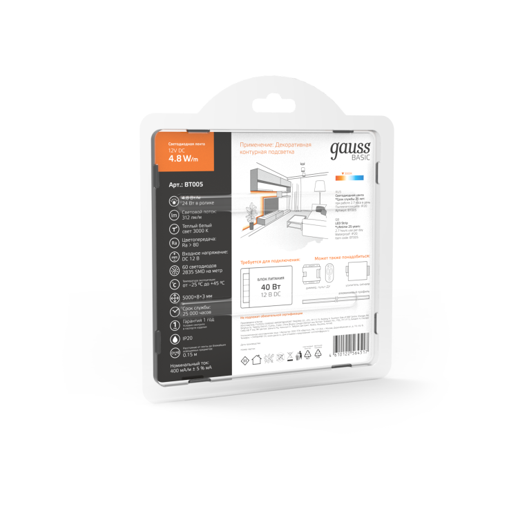 Ассортимент светодиодных лент Gauss способен решить ряд задач связанных как с декоративным освещением помещений, так и с экстерьерной подсветкой.