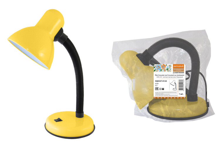 Светильник настольный на основании 40Вт, E27, желтый, (мягкая упак.) Народный (кр.1шт)
