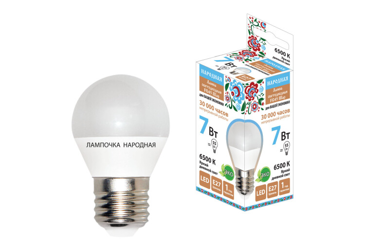 Лампа светодиодная FG45-7 Вт-230 В-6500 К–E27 Народная (кр.10шт)