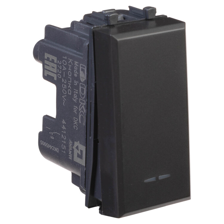 Кнопка модульная серии «Avanti». Предназначена для монтажа в систему пластиковых кабельных коробов «In-liner Front» и систему организации рабочих мест «Сотто» (Sotto) (в т. ч. кабель-каналы и короба «Aero») при помощи рамок-суппортов и каркасов «Avanti» (код 4400912 и т. д.). Используется для кратковременного включения источника питания энергией. Диаметр отверстий для ввода кабелей — 3 мм (по 2 отверстия на одну клемму). Винтовые зажимы. Шаблон для зачистки кабеля — 11 мм. Номинальный ток — 10 A. Номинальное напряжение — 230 В. Фиксация производится в подрозеточные коробки при помощи каркаса с лапками (код 4400802) и саморезов. 1 модуль. Цвет: «Чёрный матовый». Производитель оставляет за собой право вносить во внешний вид изделия изменения, которые не влияют на его функционал, безопасность и надёжность.